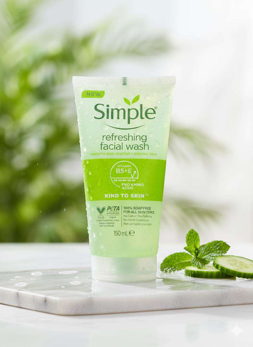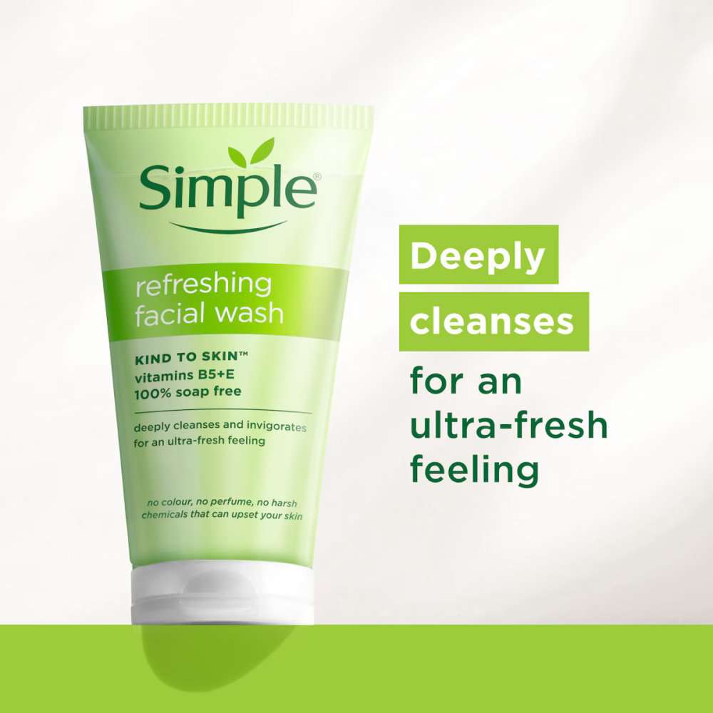 Simple Kind To Skin Refreshing Facial Gel Wash is designed for those seeking a refreshing cleanse without harsh chemicals. It is suitable for all skin types, including sensitive skin. The soap-free formula efficiently removes dirt, oil, and impurities while preserving the skin's natural moisture balance. The lightweight gel texture generates a soft lather that rinses cleanly, leaving the face feeling fresh and revitalized. Free from artificial perfumes or colors, it is perfect for daily inclusion in your skincare regimen.